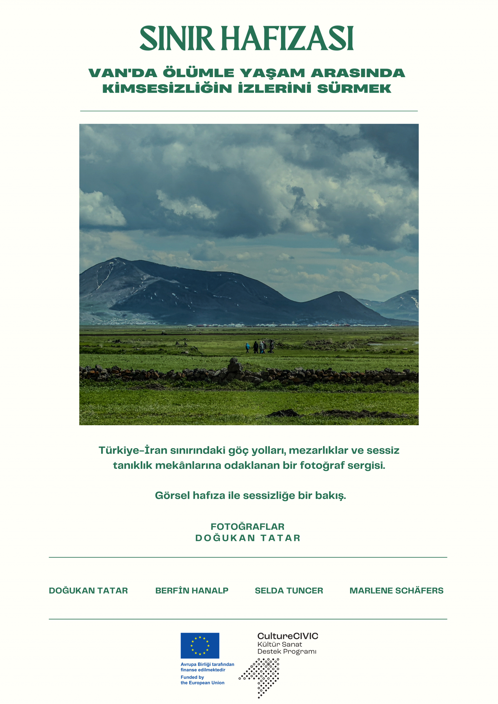 Sınır Hafızası: Van’da Ölümle Yaşam Arasında Kimsesizliğin İzlerini Sürmek” adlı sergi projesi, Türkiye-İran sınırında yer alan Van’da; göç yolları, mezarlıklar ve sınır çevresinde sessizliğin tanıklığını yapan mekânları belgelemeyi amaçlıyor. 2024 yılında iki aylık saha